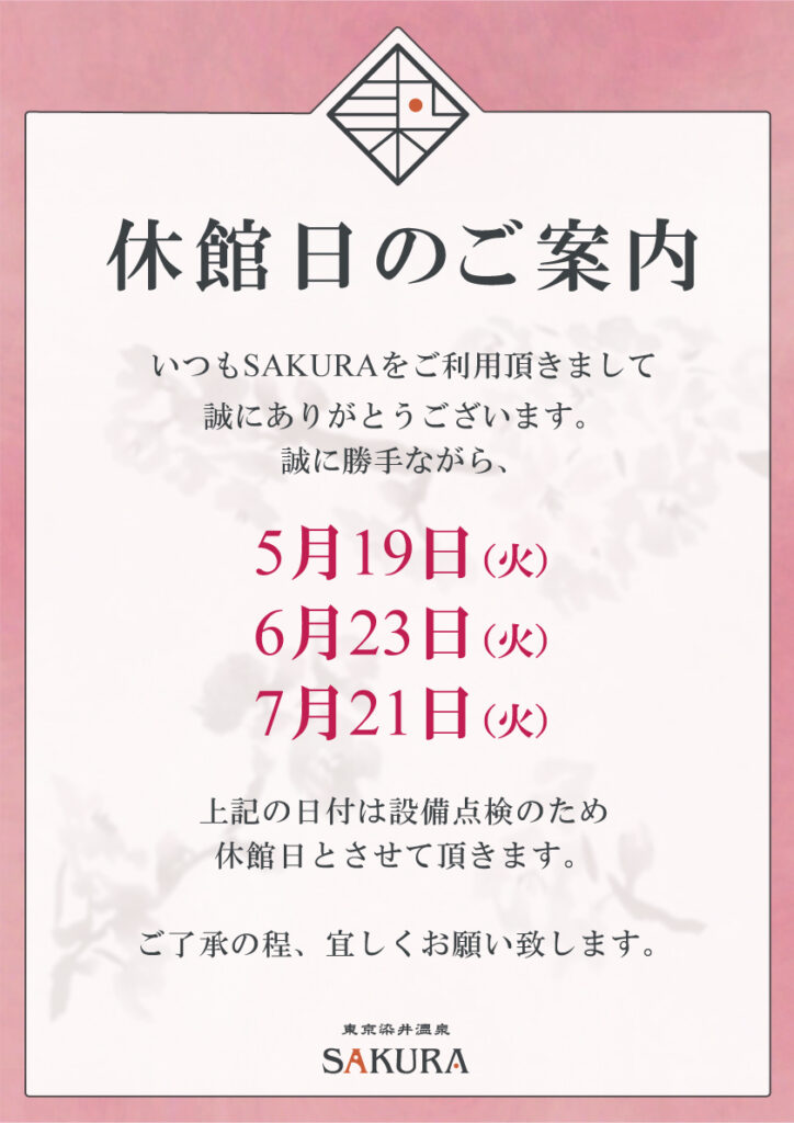 2026年5月から7月までの休館日のご案内
